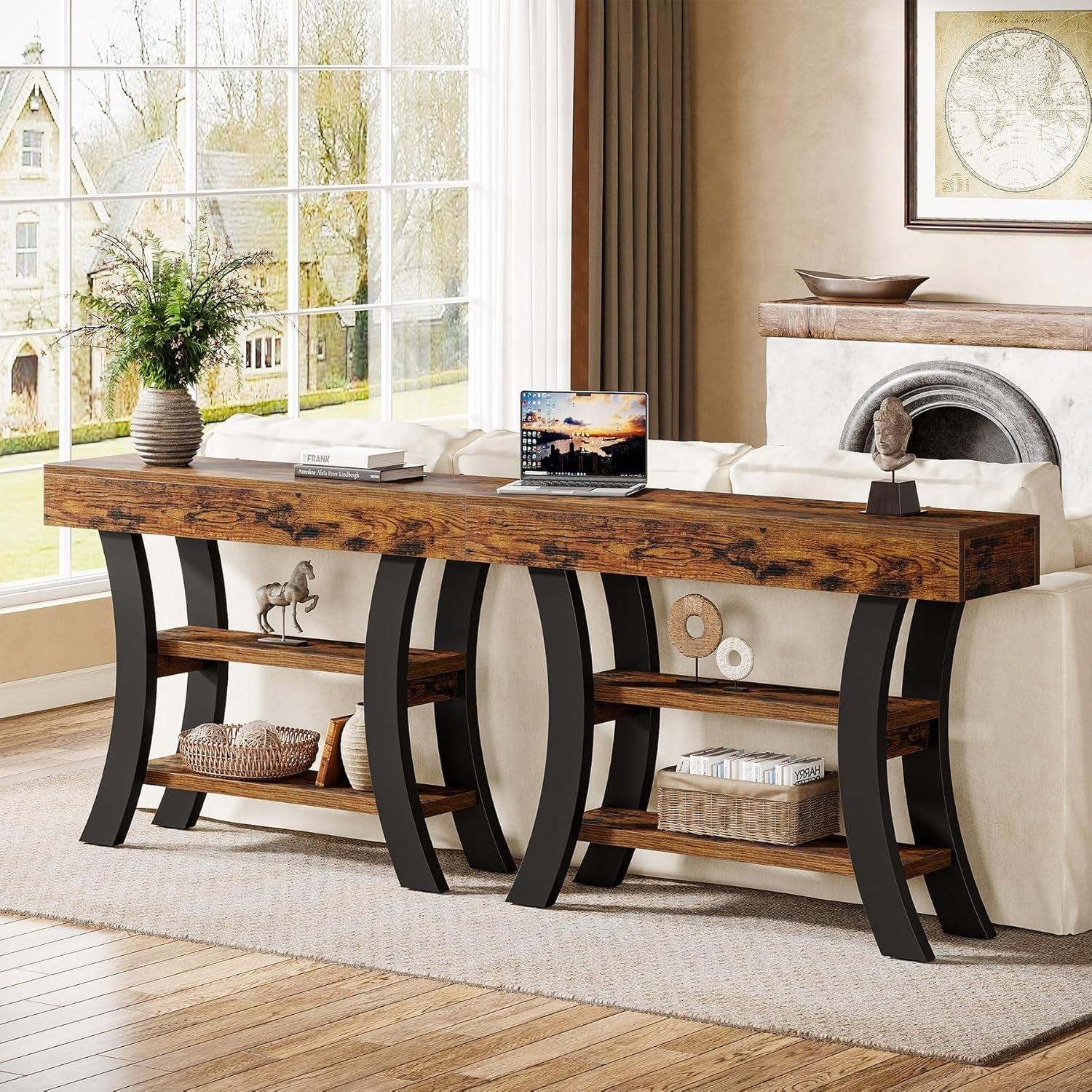 Made for compact spaces, this console table measures 41.34" L × 11.81" W × 31.5" H and features 3 tiers of display and storage. The open design makes it easy to showcase framed photos, baskets, and decor while keeping keys, mail, and daily items organized and accessible.