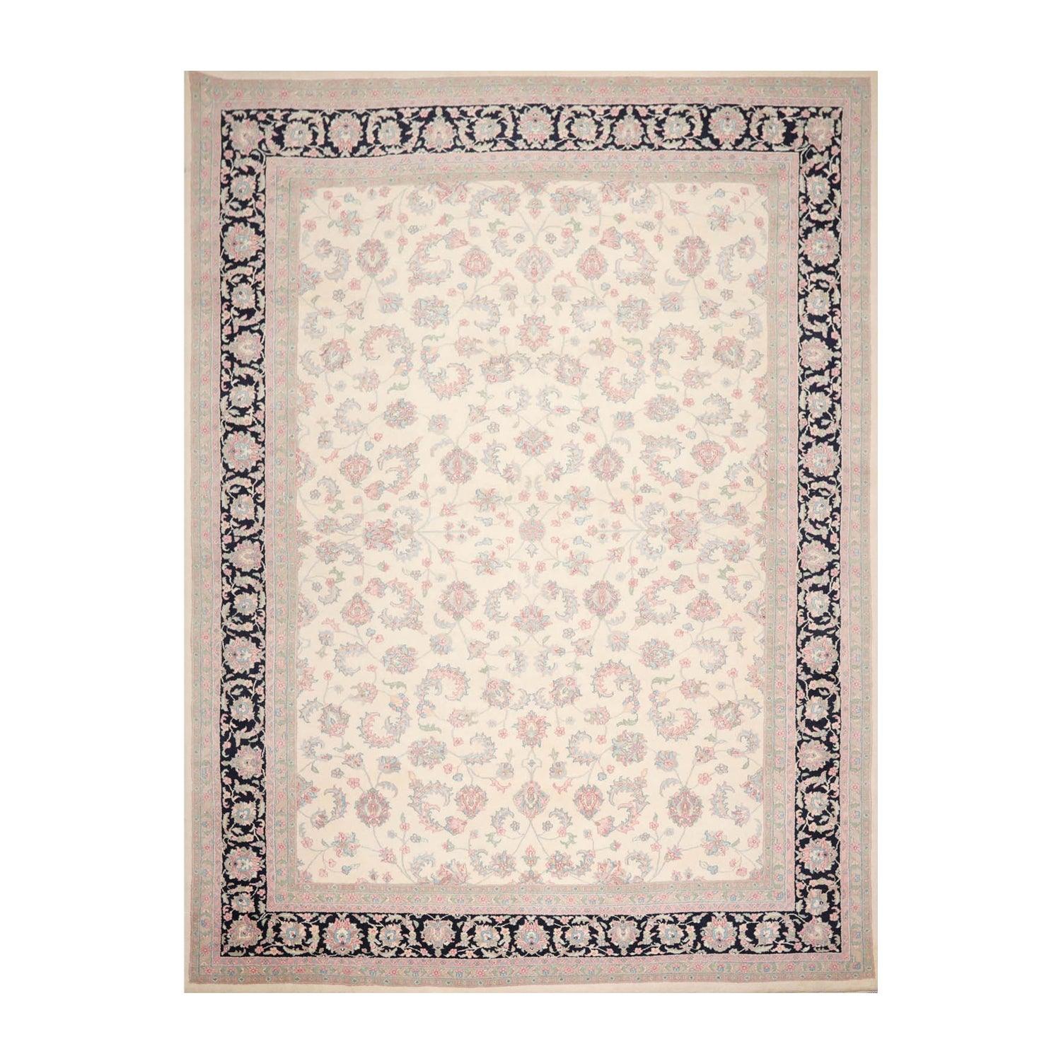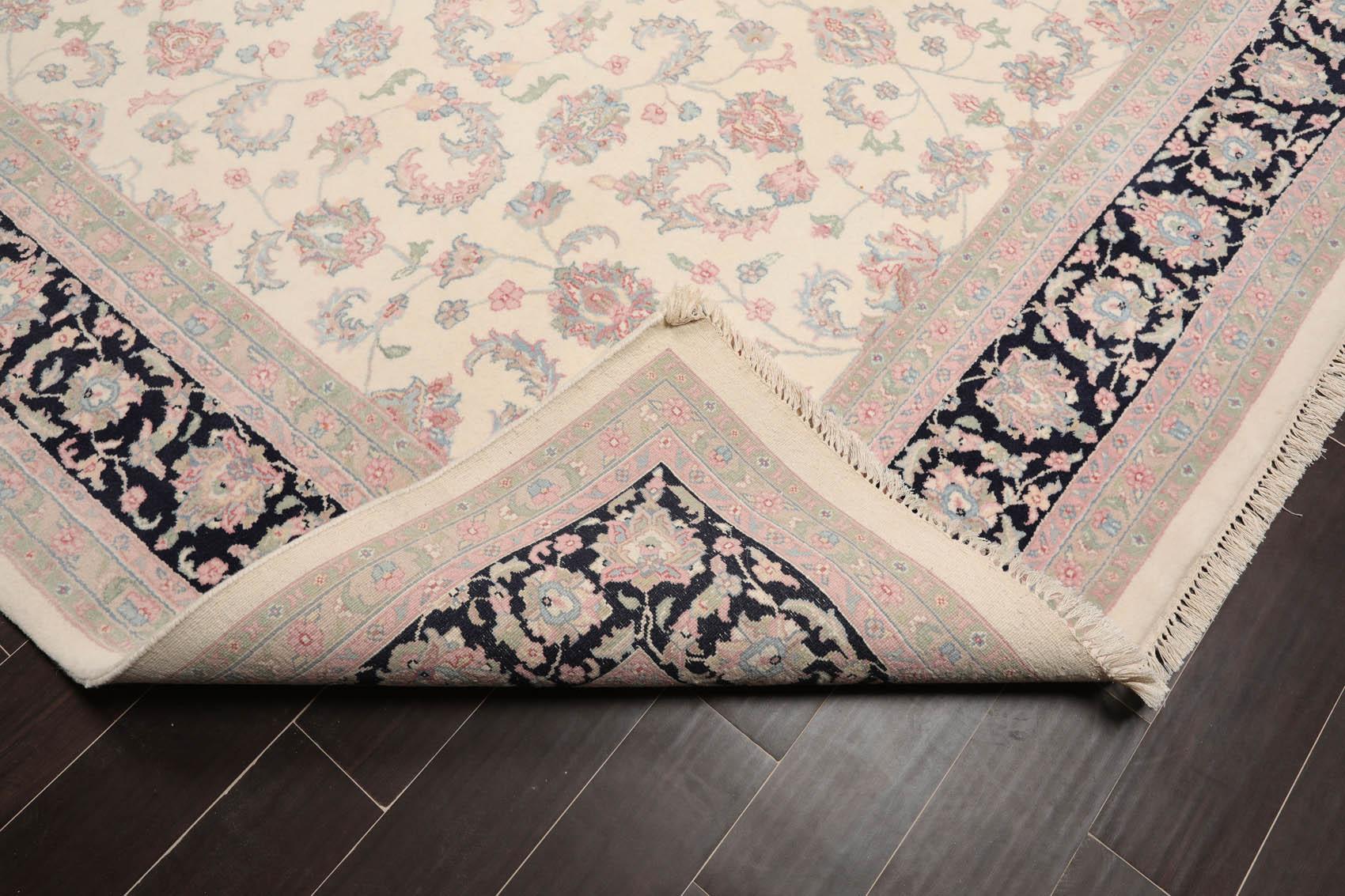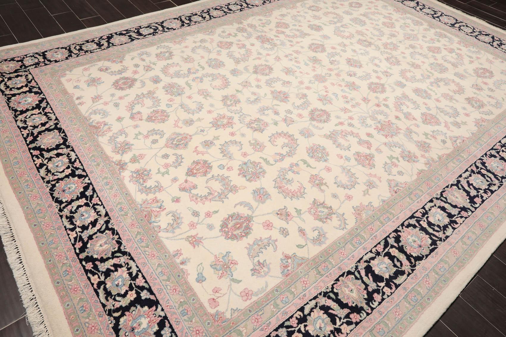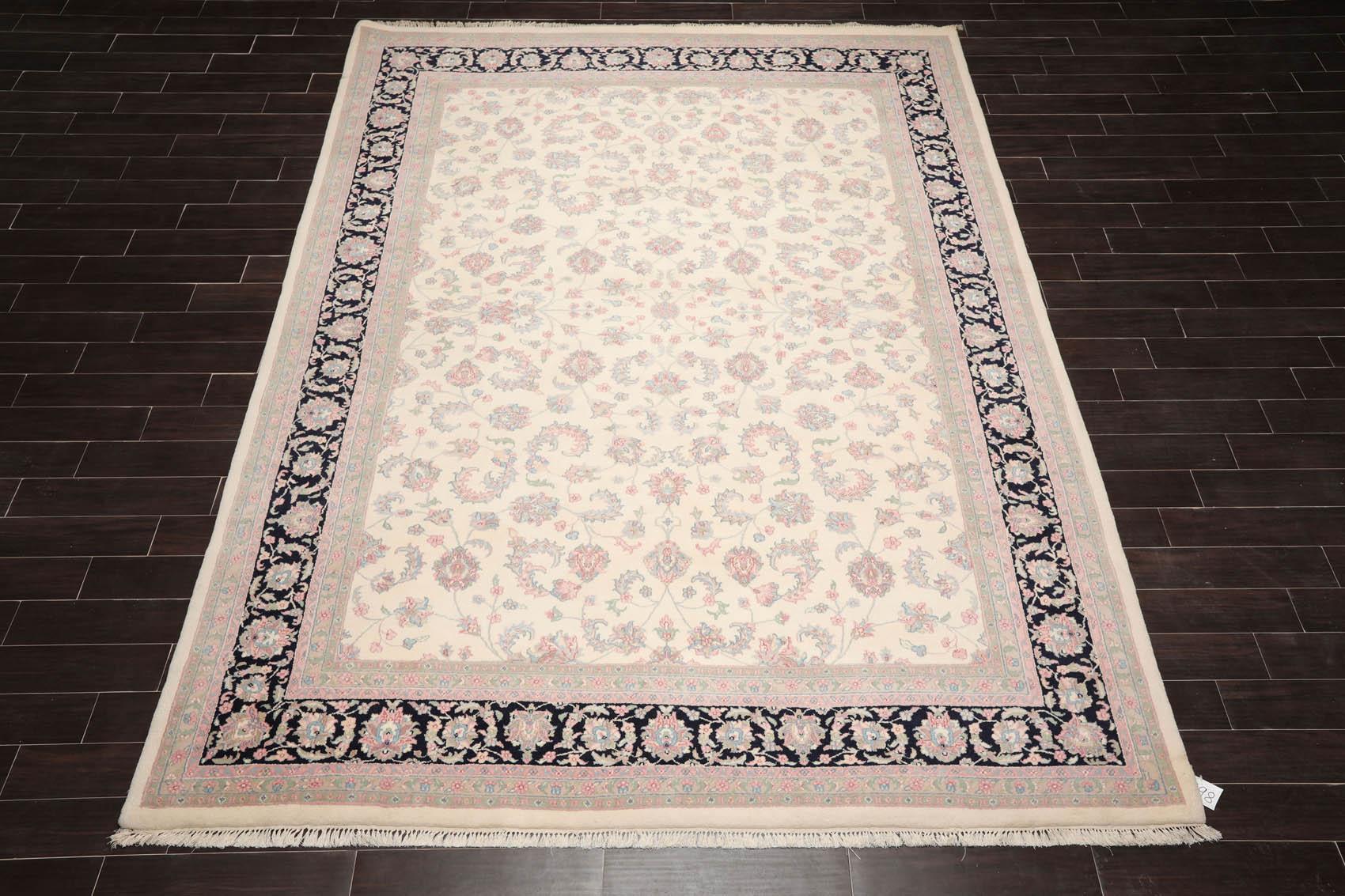 8'10" x 12'3" Hand Knotted Traditional Superfine Wool Oriental Area Rug Ivory