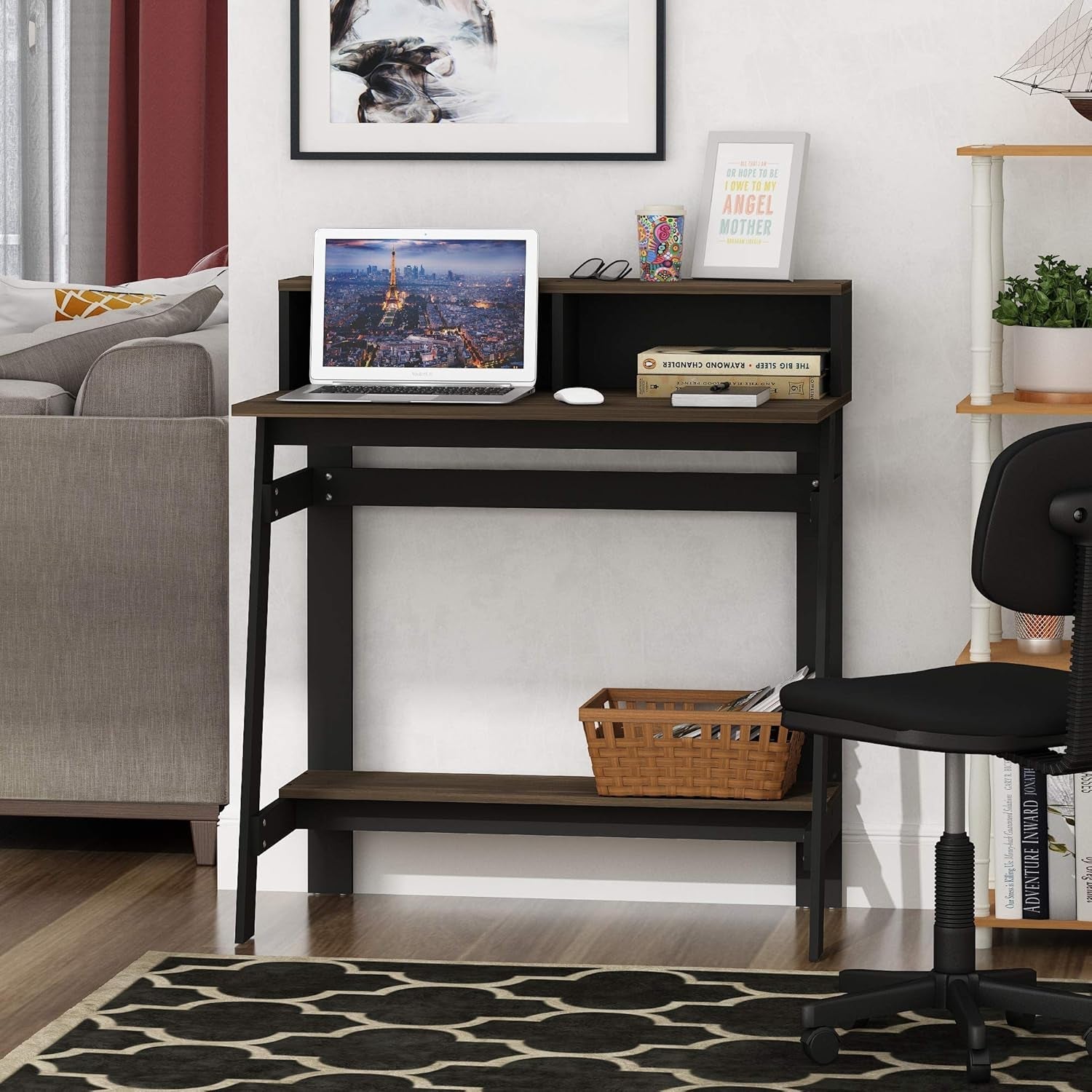 A Frame Computer Desk with Hutch Storage in Columbia Walnut