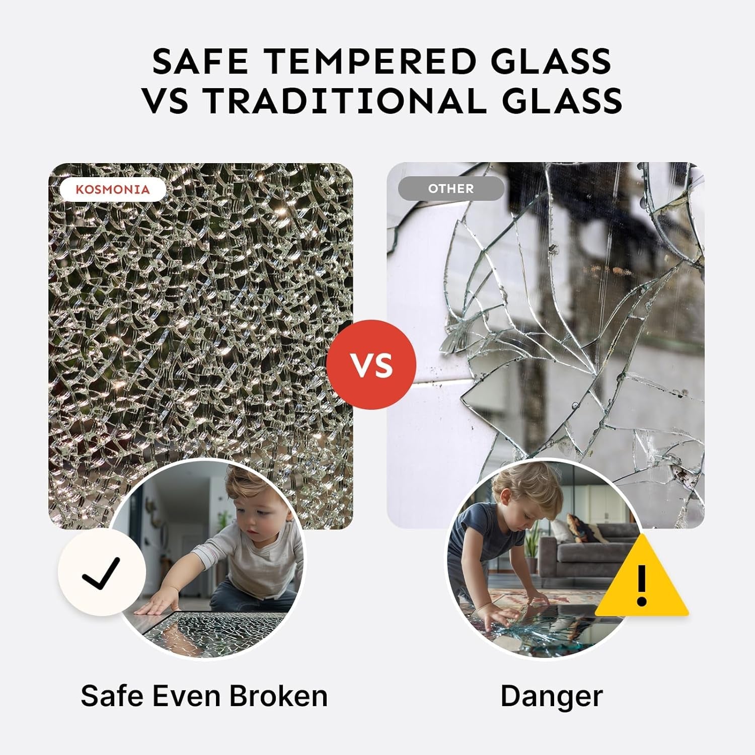 - Tempered, shatter-proof glass – five times stronger than standard glass; safer in any home, bathroom, or commercial space.