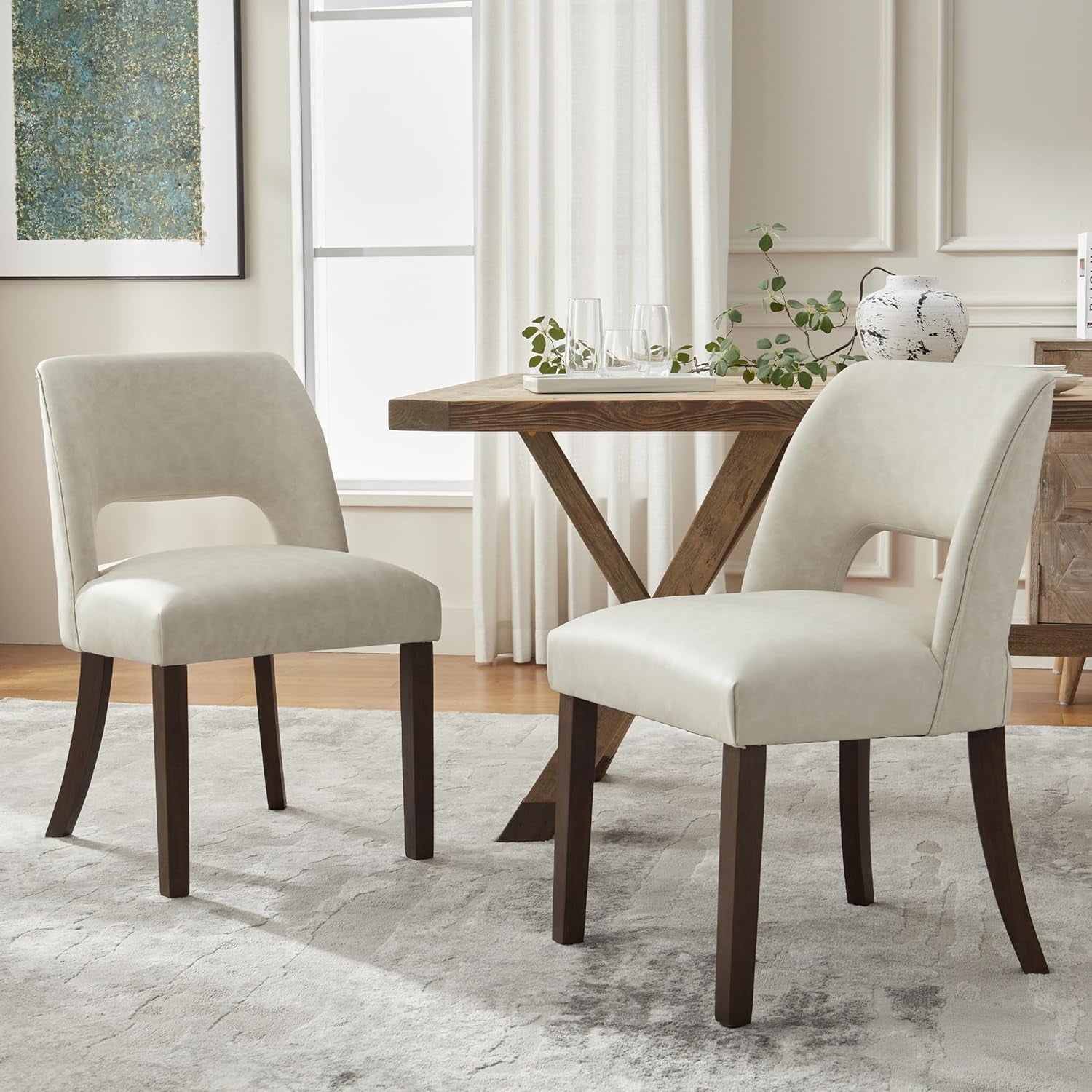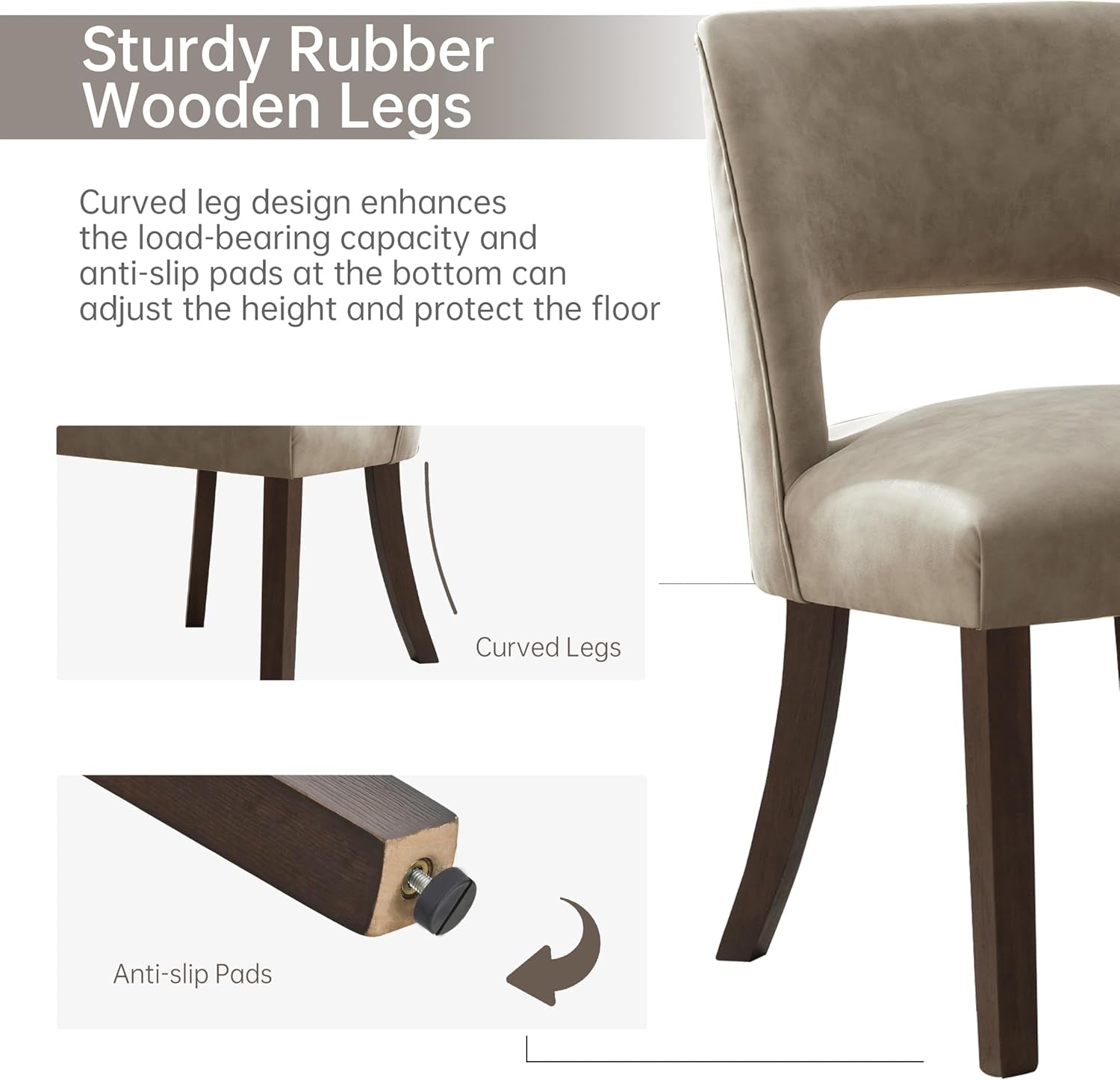 Turn every meal into a moment of quiet luxury with beige faux leather dining chairs that blend ergonomic comfort with contemporary elegance. The curved, hollowed-back design supports your posture as you dine, while warm walnut legs elevate your space and create a refined silhouette.