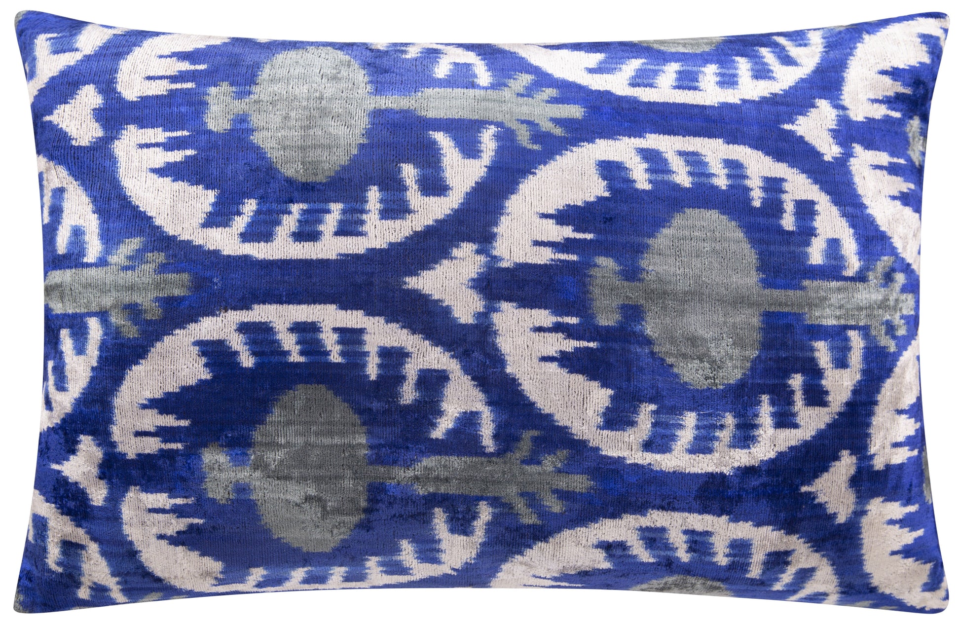Canvello Handmade Velvet Ikat Pillow – 16x24 Luxury Decorative Throw Cushion for Home Decor – Feather Down Insert, Vegetable-Dyed, Elegant Blue and White Accent for Sofa, Couch & Furniture