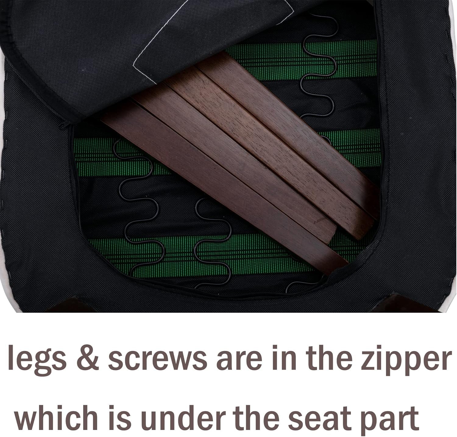 - Smart, hidden hardware — the legs and screws are stored inside the bottom of the seat for a clean appearance and straightforward assembly.