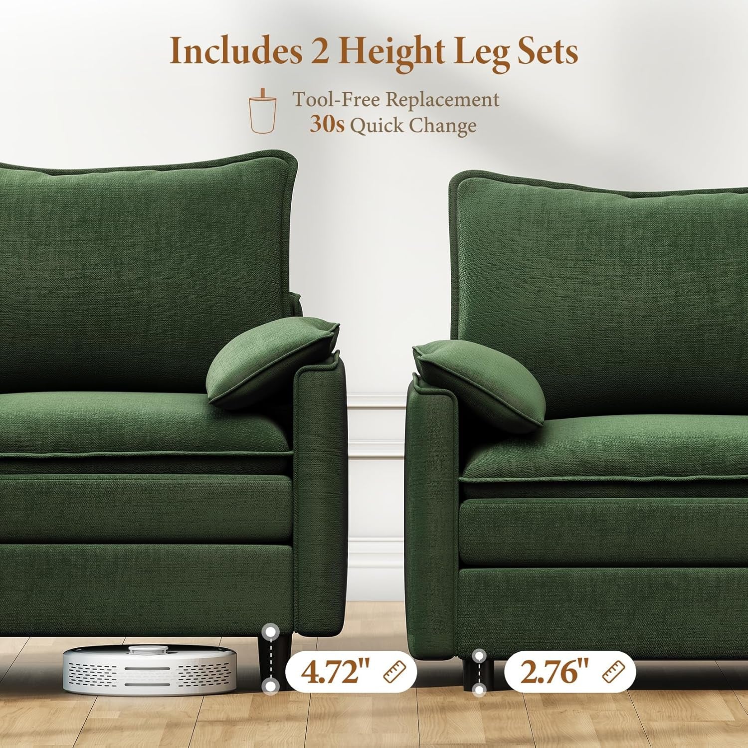 - Two leg height options: choose 2.76" or 4.72" to match your style and cleaning needs; higher height makes under–sofa cleaning a breeze for robot vacuums.