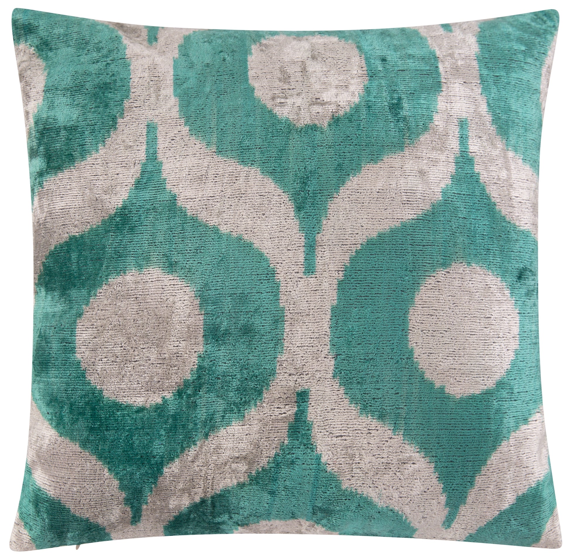 Add a refreshing touch to your home with this exquisite handmade velvet throw pillow, expertly crafted using natural vegetable dyes. Featuring a bold geometric circle pattern in a stunning teal and beige color combination, this pillow is designed to elevate any space. Measuring 16x16 inches, it is ideal for sofas, chairs, and beds, making it a perfect decor accent. The premium down feather insert ensures maximum plushness and comfort. Whether you're styling a modern, coastal, or bohemian-inspired space, this pillow seamlessly blends into any setting. Its soft yet durable silk velvet fabric guarantees longevity while exuding a luxurious feel, making it a timeless addition to your home decor collection.