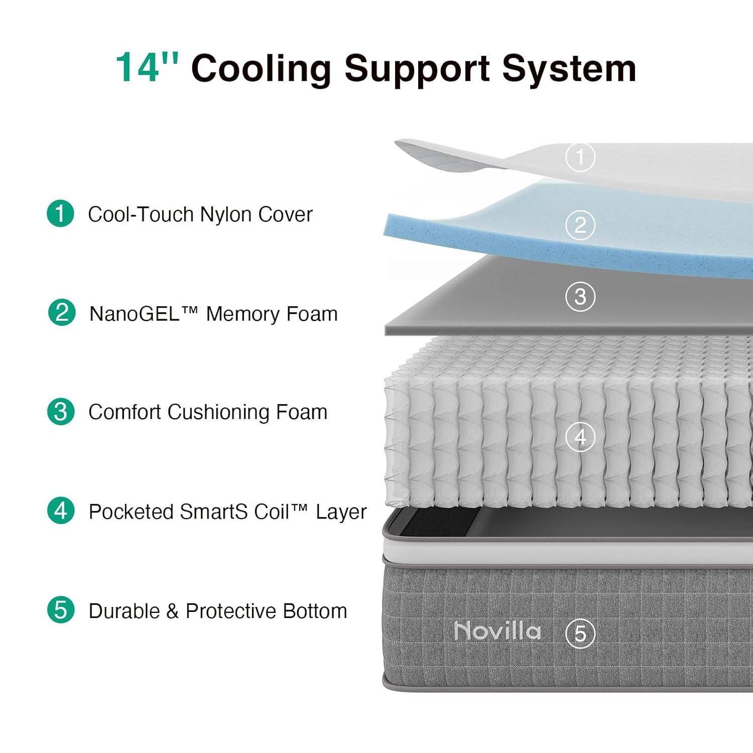 - Cooling gel memory foam plus a soft comfort foam layer cushion shoulders, hips, and pressure points while actively dispersing heat for a refreshing sleep surface.